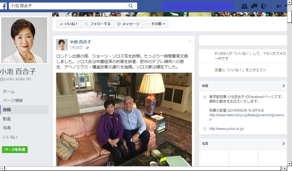 ジョージ・ソロスと親密にしていた小池百合子