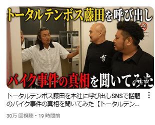 拡散された動画は、バイクで走行していた藤田が車線変更しようとした際、後方から来た撮影者の車にクラクションを鳴らされたことに怒り、信号で停止して「ウインカー出してたよな、コラァ! おい!」と撮影者に詰め寄る様子などが撮られたもの。